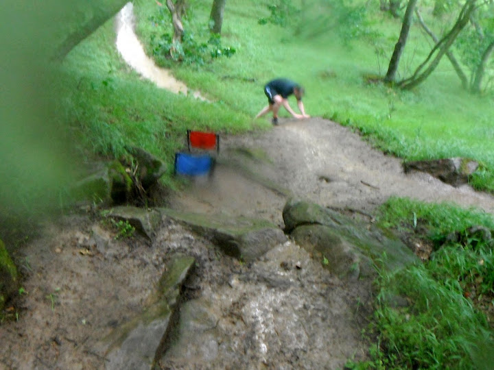 I don't know how else to explain the conditions other than imaging running on a Slip-n-Slide while it's raining. Running uphill was all but impossible since, with every step, we were actually sliding back down the hill. Most of us attempted to run on the side of the hills in whatever grass we could find so we had some kind of traction. I fell once...it was as I was trying to pass a guy pushing a